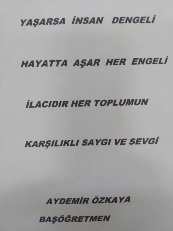 3 ARALIK DÜNYA ENGELLİLER GÜNÜ KAPSAMINDA OKULUMUZDA PROGRAM DÜZENLENDİ. OKUL MÜDÜRÜMÜZ AYDEMİR ÖZKAYA KENDİ YAZDIĞI ŞİİRİ PAYLAŞARAK ÖĞRENCİLERİMİZDE FARKINDALIK OLUŞTURDU.
